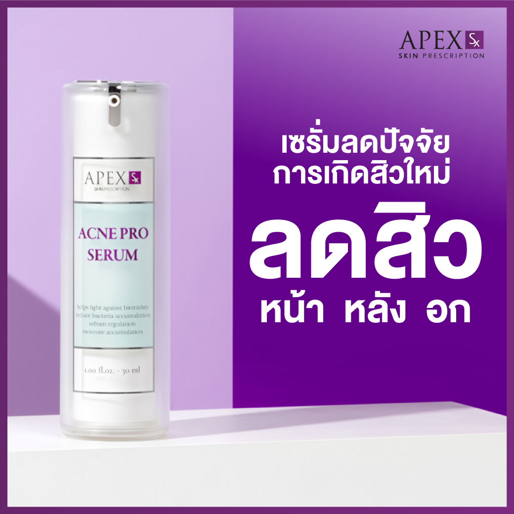 #เซรั่มสำหรับผู้มีปัญหาสิว APEX-SX ACNE PRO SERUM เซรั่มรวมการดูแลปัญหาต่างๆ ของการเกิดสิวไว้ในขวดเดียว #เป็นสิวดูแลง่ายไม่ต้องหลายขั้นต้อน เรารวมสารสำคัญสำหรับสิวสูตรเข้มข้นไว้ให้ในขวดนี้แล้วค่ะ